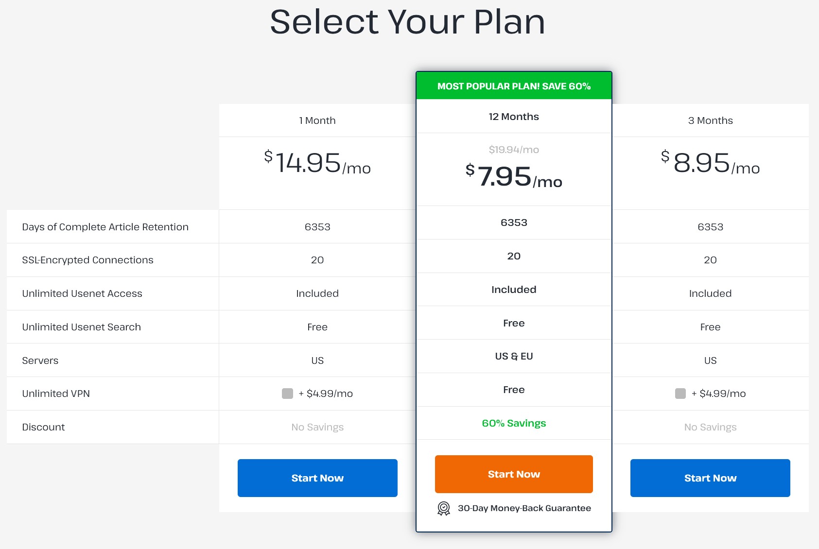 UsenetServer frequently runs promotions, especially around holidays and via referral sites. At the time of writing, the standout offer is the Save 60%” yearly deal mentioned above – effectively locking in $7.95/mo for unlimited Usenet + VPN. This is advertised as a lifetime discount, meaning you keep that low rate for as long as you remain subscribed continuously. The provider’s website also highlights that this is the most popular choice, with around 81% of users opting for the annual plan (a testament to its value). Occasionally, UsenetServer has partnered with review sites for exclusive deals – for example, TopTenUsenet noted an offer of $7.95/month with 3 extra months free for new signups. It’s wise to search for UsenetServer coupon codes or promotions (such as Black Friday sales) because you might snag additional savings or bonus months. UsenetServer’s 60% off is on its fully unlimited offering and isn’t a short-term teaser rate; that’s a strong value offering. As for other bonuses, currently UsenetServer includes the VPN for free in the yearly plan, which in the past was a paid add-on – essentially a built-in special offer. There’s no separate “free month” trial beyond the refund guarantee, and no mention of loyalty programs or referrals on their site from what we’ve seen. In summary, the best way to subscribe to UsenetServer is via its annual discounted plan, and if you’re in the market, compare what Easynews/Newshosting are offering at the moment as well – you’ll often find all three competing to offer the most attractive bundle of Usenet + VPN at the lowest price.