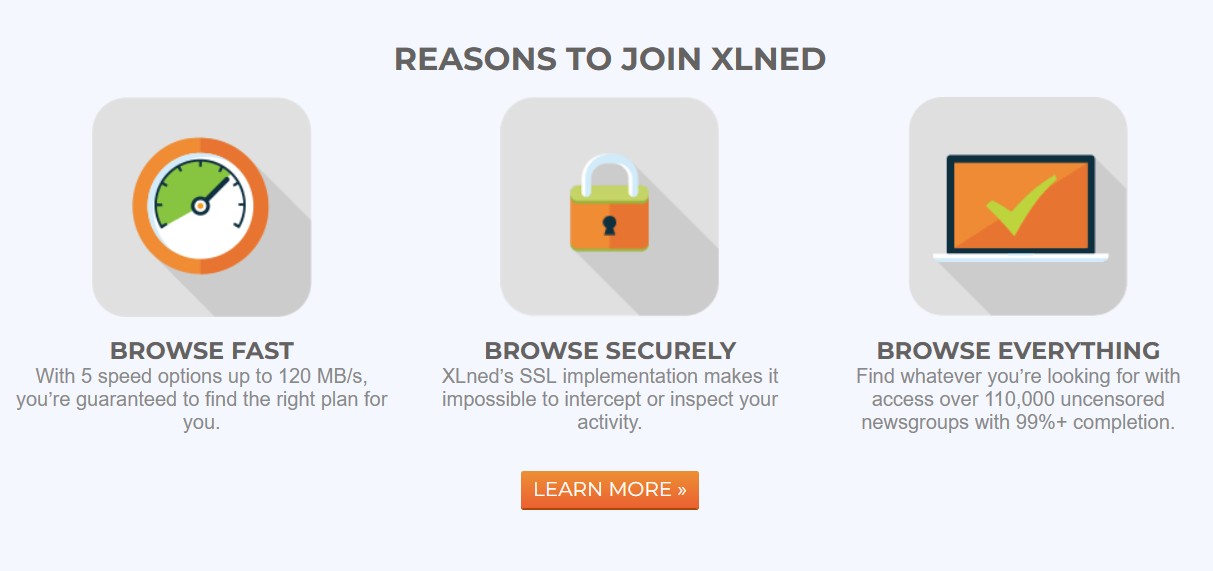 XLNed is a European Usenet access provider that has been operating since 2007, offering a range of budget-friendly subscriptions for Usenet enthusiasts. The company, now officially based in Iceland, emphasizes simplicity and value over deluxe features. All XLNed plans provide unlimited download volume (no data caps) and 24/7 access to Usenet, with over 110,000 uncensored newsgroups available and a claimed 99%+ article completion rate. Binary retention currently spans roughly 4,100 days (around 11 years of posts) on XLNed’s servers – a respectable duration, though shorter than what top-tier providers offer (more on that later). Each subscription includes SSL encryption at no extra cost, ensuring that your Usenet activity is private from your ISP and others. XLNed also allows users to post to newsgroups and even runs a separate upload server so that posting content won’t eat into your download connections.